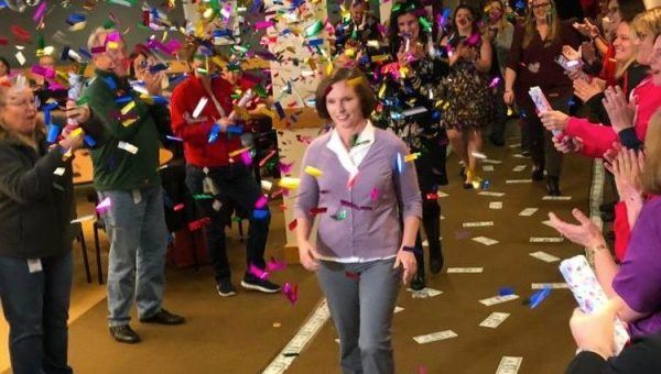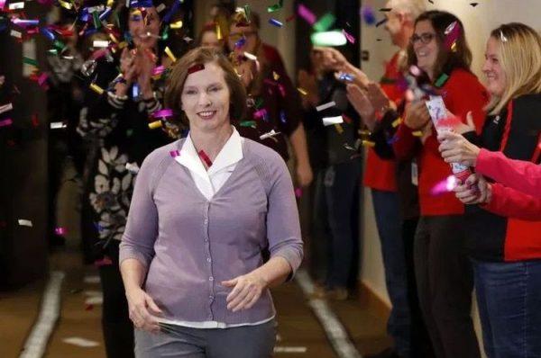 “I want you to know that as I stand here today I know the responsibility that I have to do good with this money,” she said with tears in her eyes. “My life has changed forever. I plan to make thoughtful and responsible decisions on giving to my friends, my family and setting up so that my grandchildren will all have a college education.”