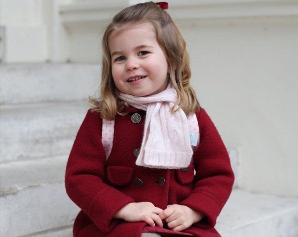 The youngster had her hair off of her face at the royal wedding in May, but this outing she appeared to be wearing her locks more like her mother’s who also wears her hair parted towards the center of her crown.
