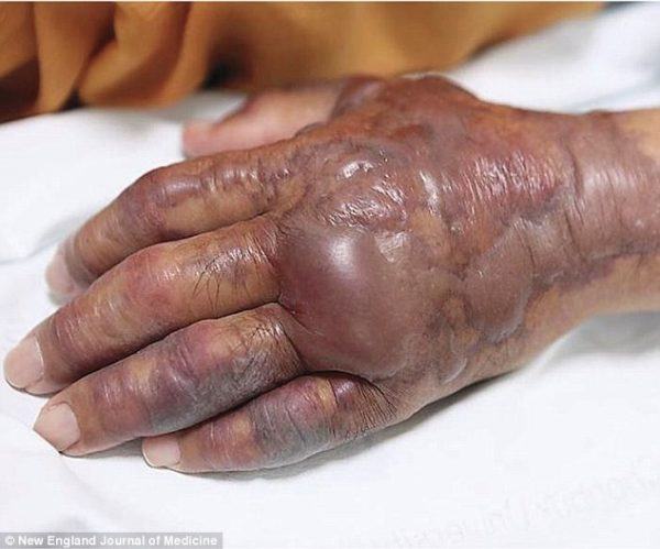 The doctor drained the blisters and carefully pulled away as much of the infected tissue as possible, but despite their efforts, the man ended up losing his hand because of the contaminated sushi.