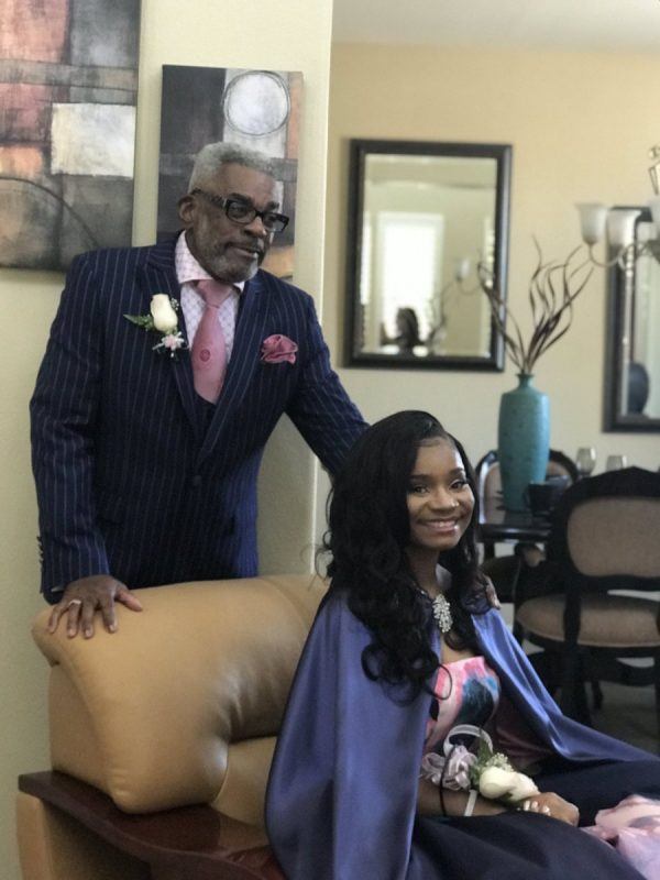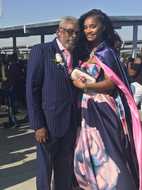 When Kaylah and her friends met up to take some photos before they went out, her grandfather Alvin Hackett walked out wearing a color-coordinated outfit that perfectly matched her dress. He was not about to let his granddaughter go to her prom without a date!
