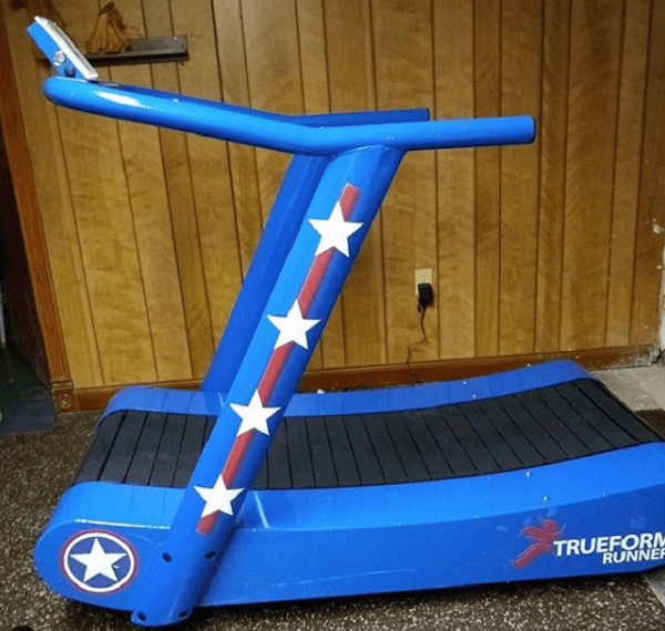 Since Don lives across the country, he trains her online, but he recently surprised her in person with a special treadmill that is decked out in Captain America colors.