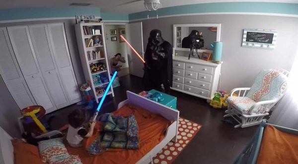 “Star Wars” is one of the most popular movie franchises of all time, and ever since it came out in the 1970s, it has been loved by people of all ages. Fans everywhere love dressing up as their favorite characters from the movies, and in the video below, you’ll see a dad dress up as Darth Vader to prank his 2 year-old son as he wakes him up!