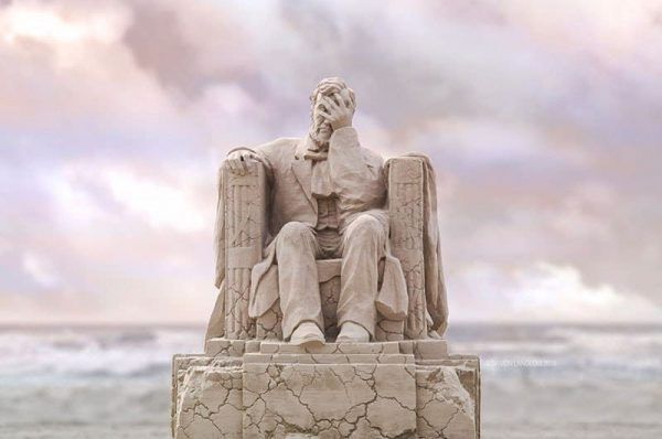 The man behind this sculpture is Damon Langlois, who managed to create a full sculpture in the likeness of the sixteenth president out of sand. Here’s the big pile of sand that his sculpture started out as.