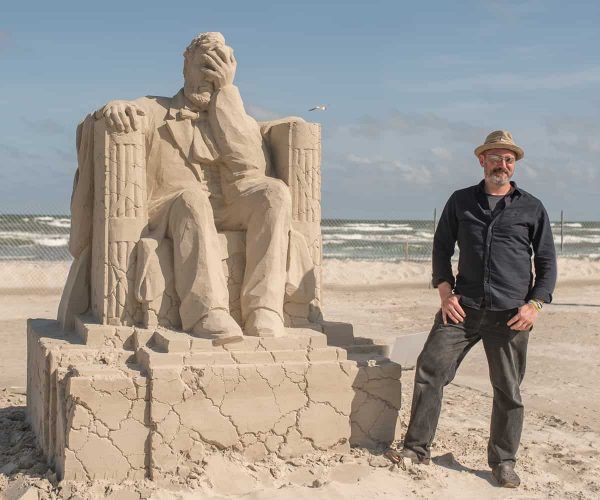 Photos of a patriotic Abraham Lincoln sculpture are going viral this week after it won 2019’s Texas SandFest.