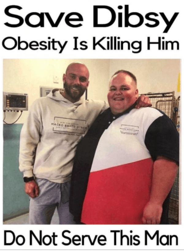 Knowing that fast food was Dibsy’s enemy, Mike created flyers to hand out at all Dibsy’s favorite restaurants around the city Middlesbrough, instructing employees not to serve him.