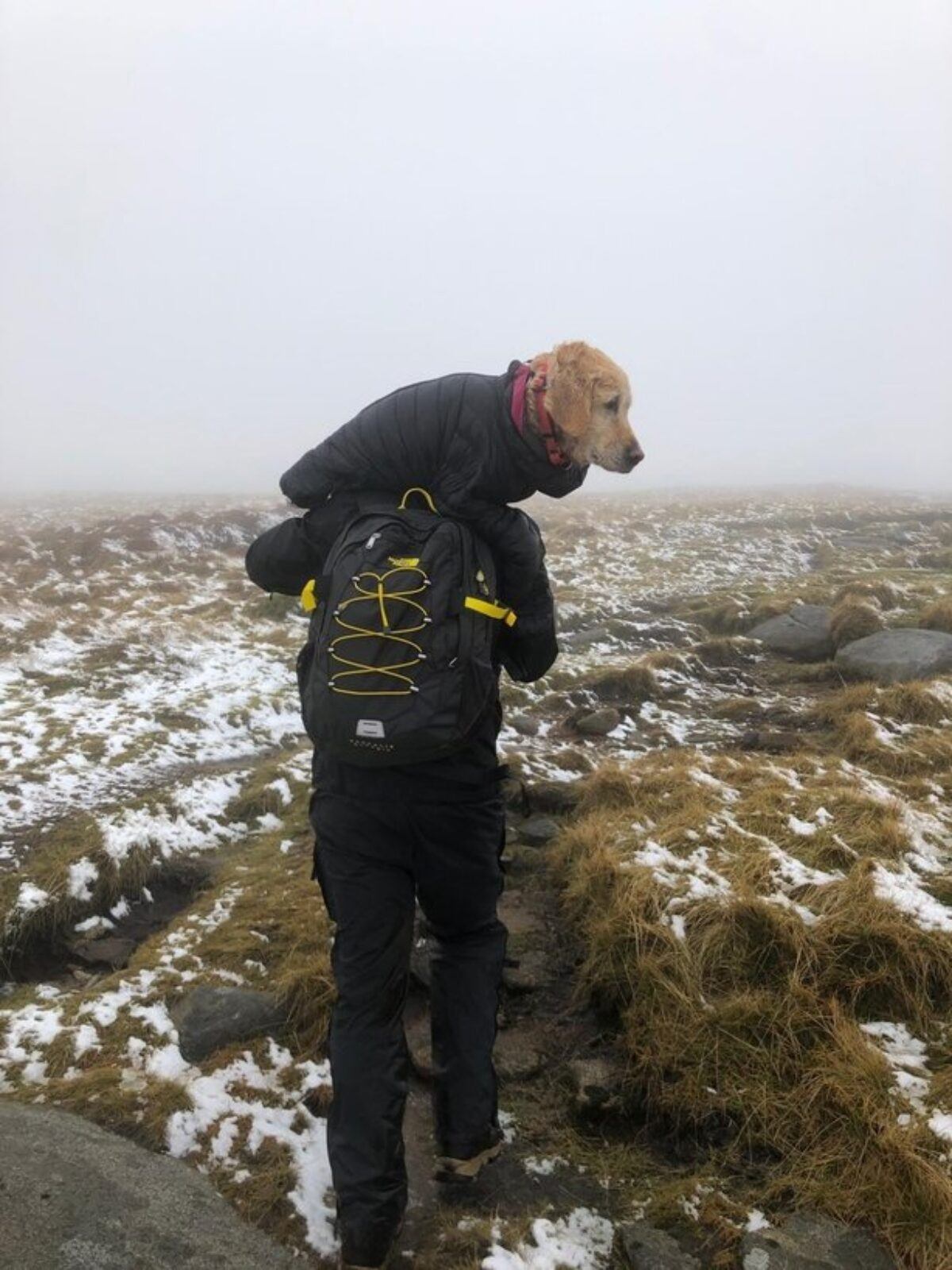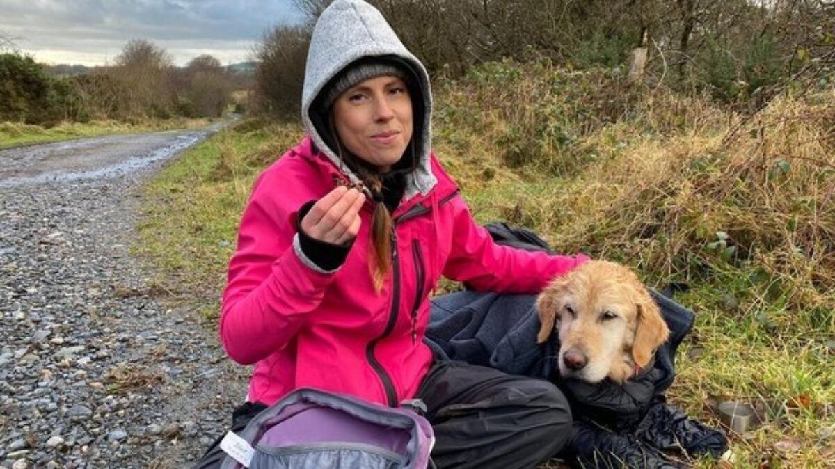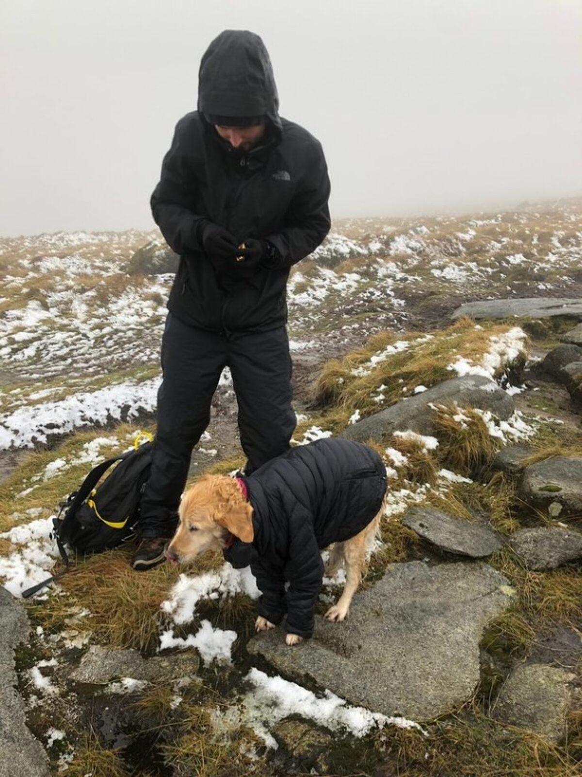 “We were almost at the top when my girlfriend Ciara screamed ‘there is a dog! There is a dog!’ That poor thing was curled up against the rock. She was petrified, freezing cold. She didn’t have enough energy to bark or stand.”